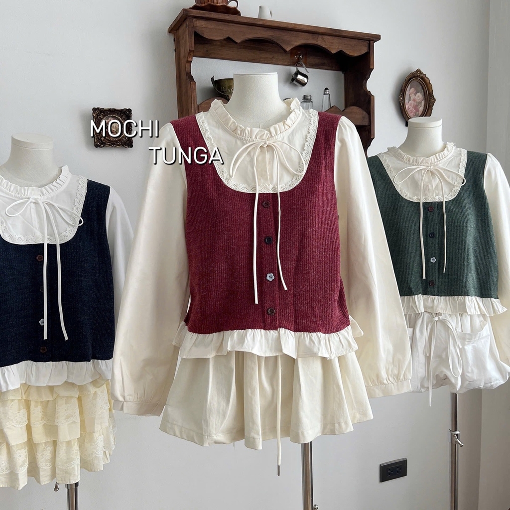Áo kiểu set áo dây hoa viền ren kèm khoác