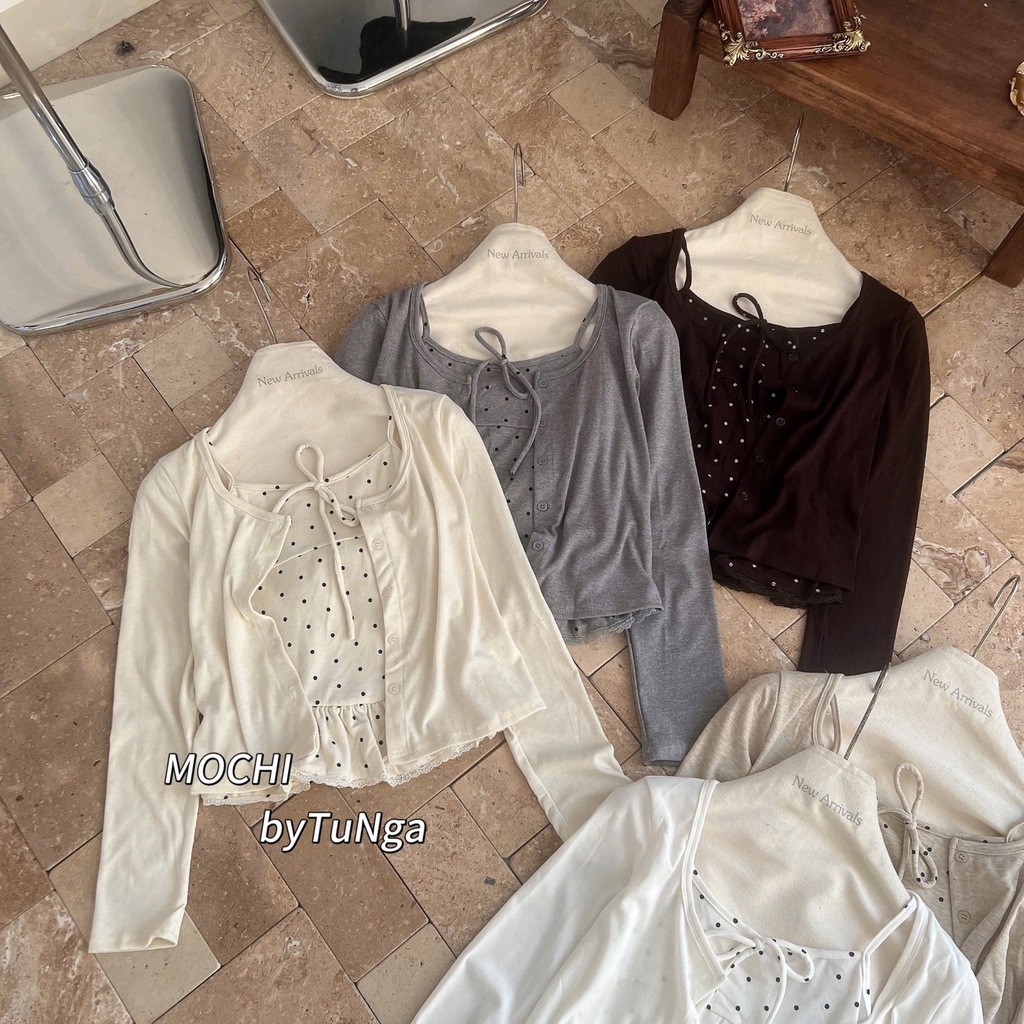 Áo kiểu set khoác ngắn áo dây chân xoè