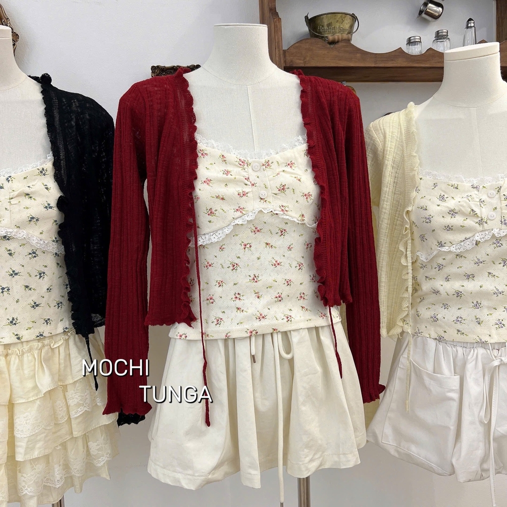 Áo kiểu set khoác cột dây áo hoa nhí