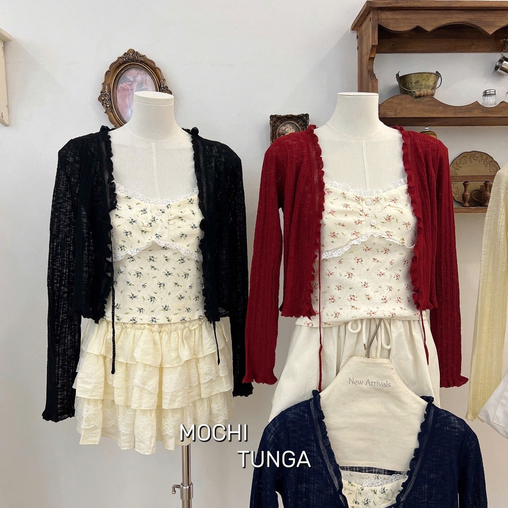 Áo kiểu set khoác ngắn áo dây chân xoè
