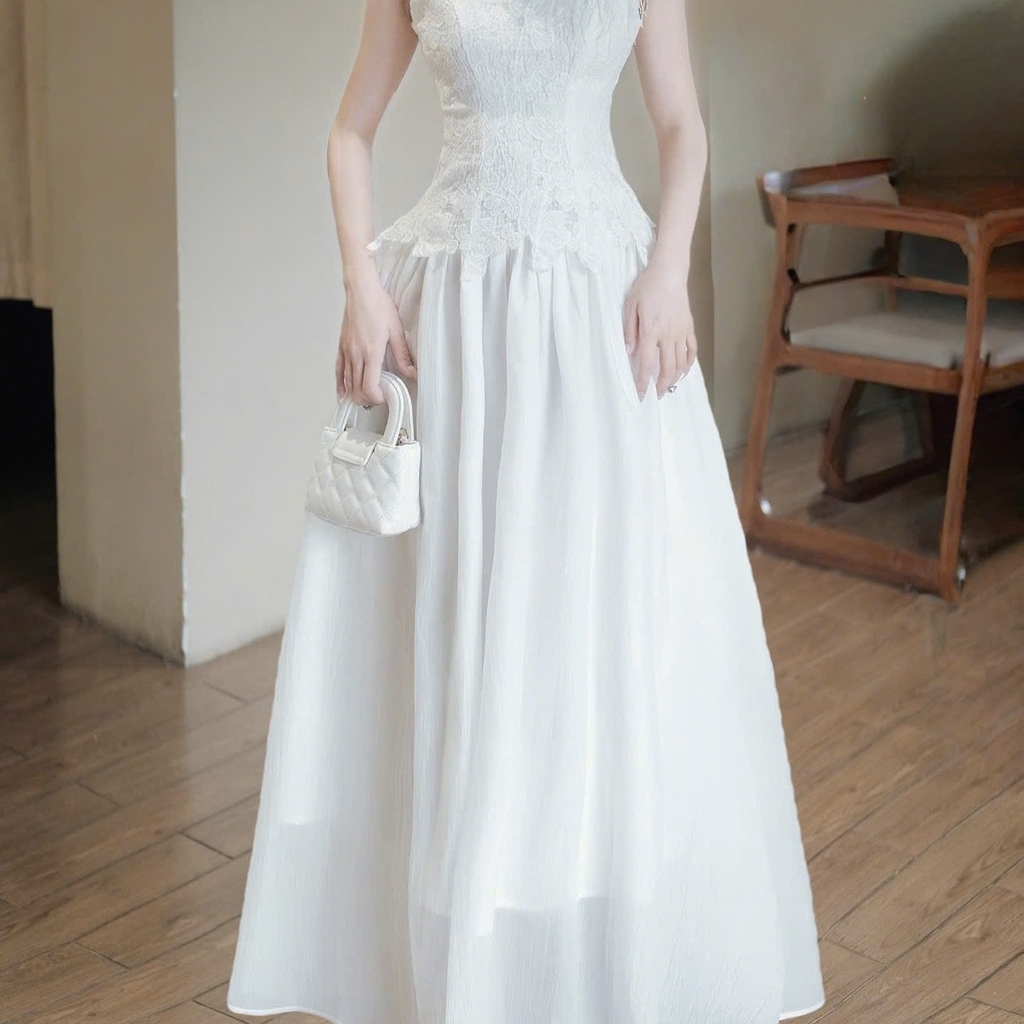 Đầm ren thiết kế choàng vai chân tơ sang chảnh