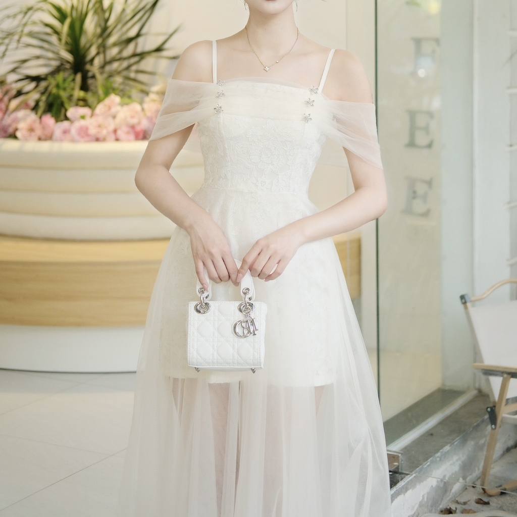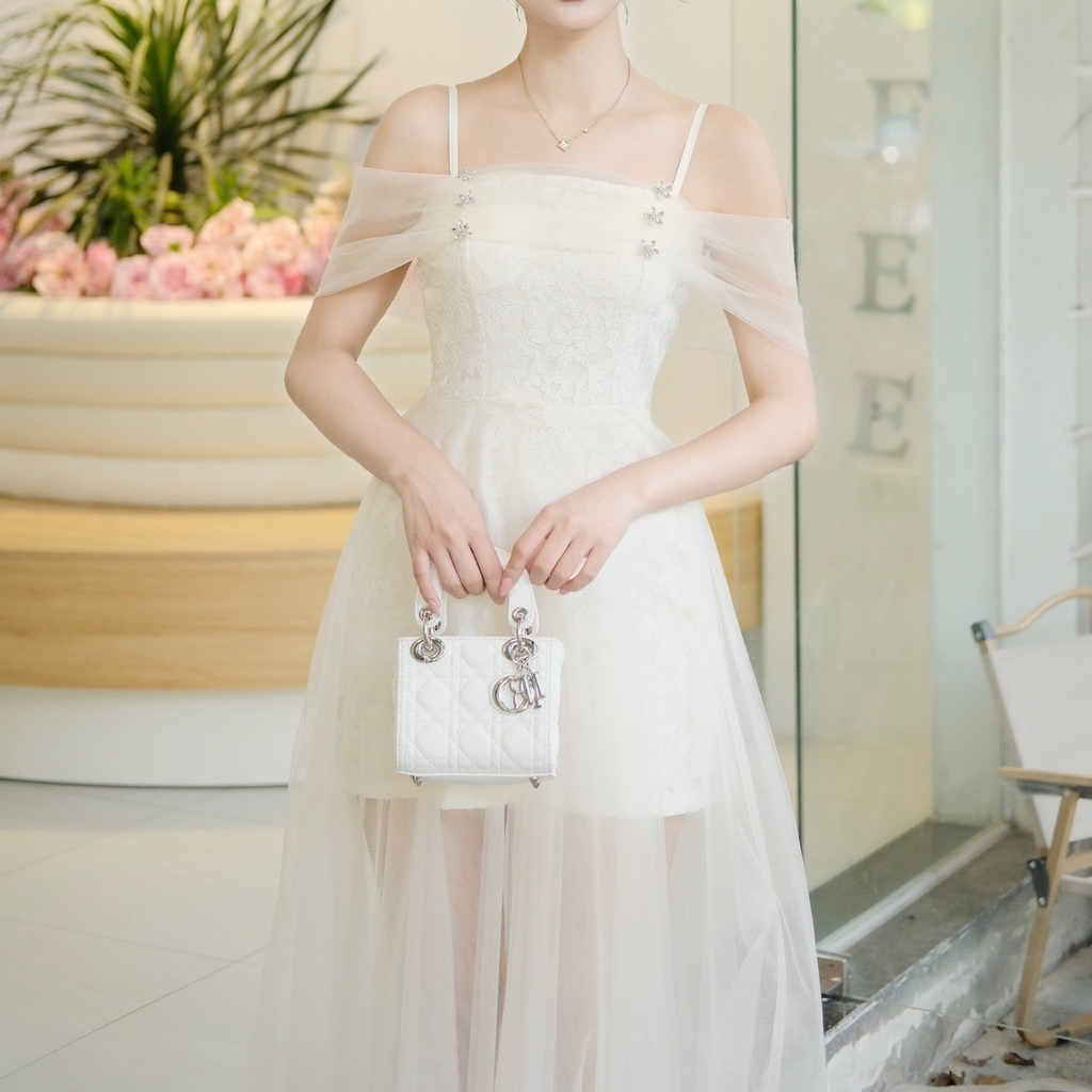 Đầm ren thiết kế choàng vai chân tơ sang chảnh