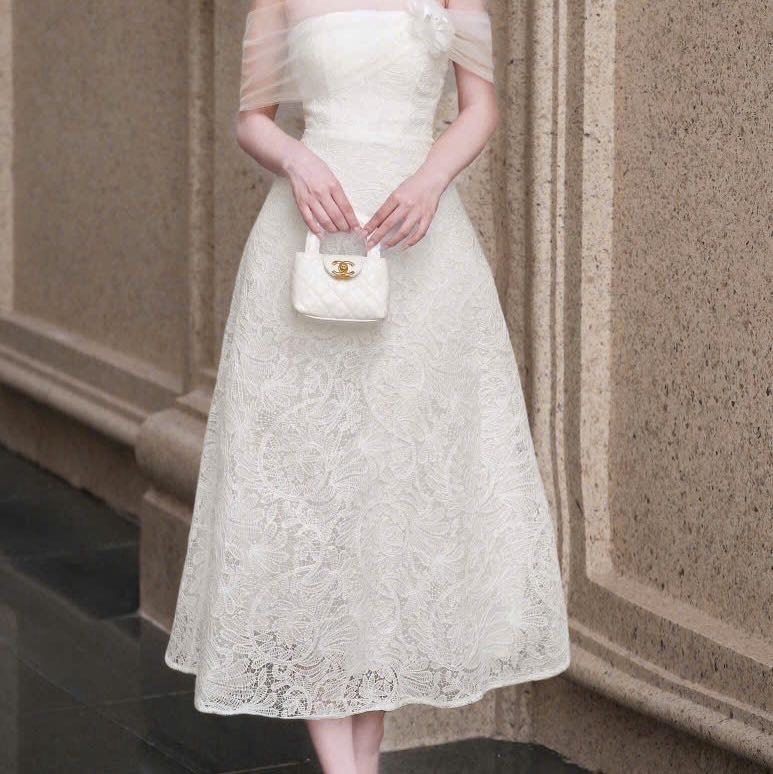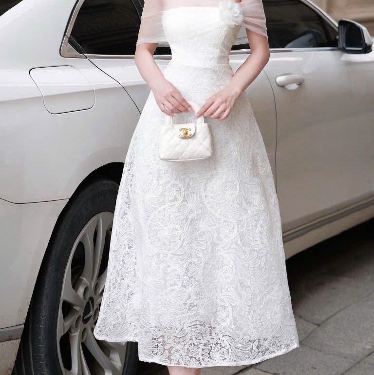 Đầm ren thiết kế choàng vai chân tơ sang chảnh