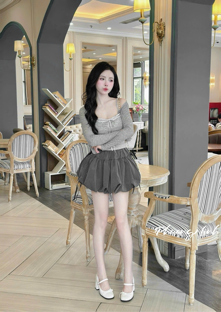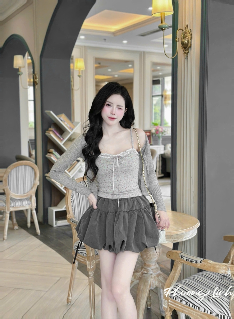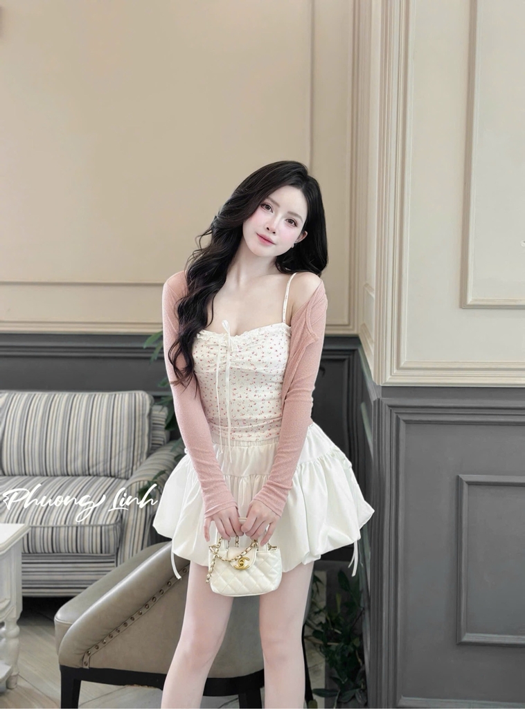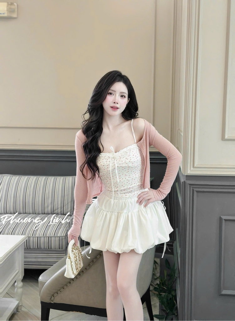 Đầm 2 dây hoa nhí kèm khoác Pl